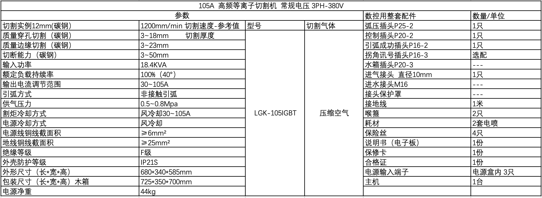 逆变式空气等离子切割机LGK-105IGBT 单相供电220V/三相供电380V/220V Cut/Grid/Marking/Gouge 切割/网格/打标/气刨