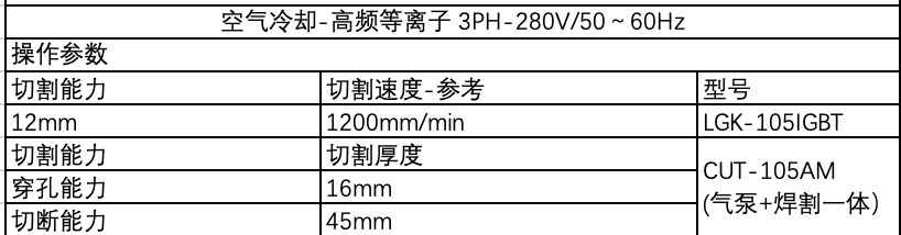 焊/切内置气泵等离子切割机LGK-105M 3PH-380V