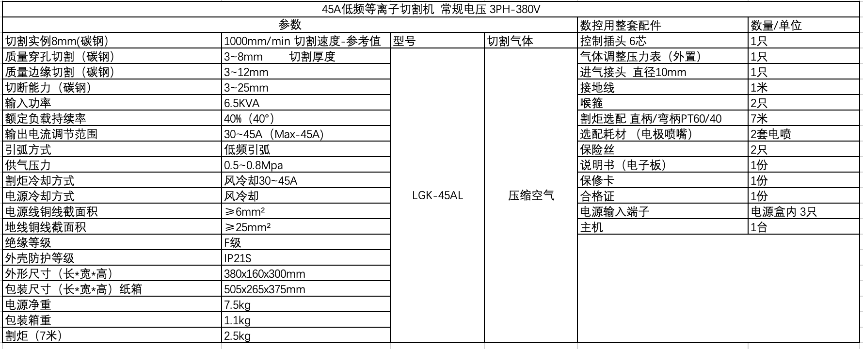 工业级 40%(占空比) 2PH-110v/220v 50~60Hz 等离子切割机。