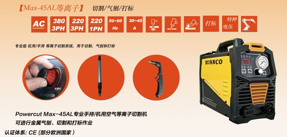 逆变式空气等离子切割机Max-45AL 双电压2PH-110/220V Cut/Marking/Gouge 切割/打标/气刨
