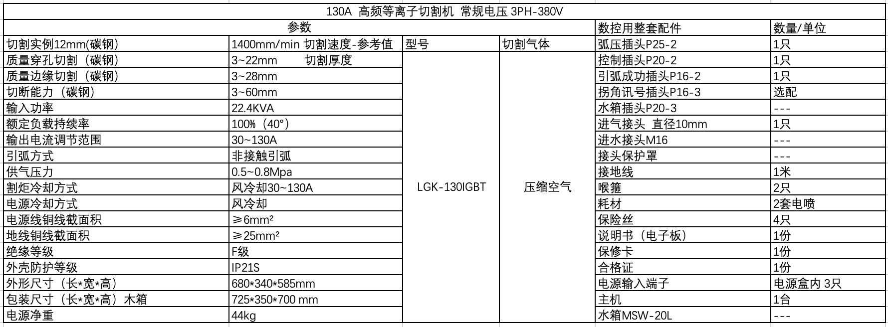 逆变式空气等离子切割机LGK-130IGBT 单相供电220V/三相供电380V/220V Cut/Grid/Marking/Gouge 切割/网格/打标/气刨