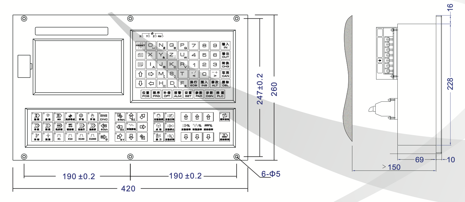 RS232:零件程序、参数等文件双向传输,支 持PLC程序、系统软件串口升级