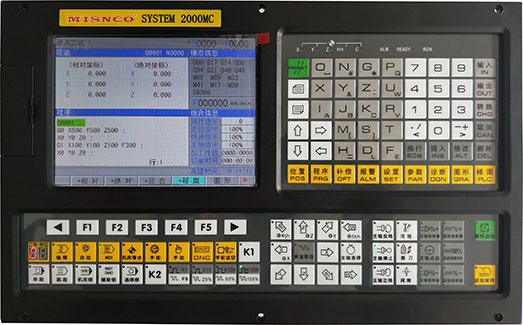 1000M/2000M铣床加工中心数控系统为北京广兴凯数控设备有 限公司自主研发的普及型数控系统,具有竖式和横式两种结构,适配铣 床、钻铣床、磨床等。本系统采用32位高性能CPU和超大规模可编程器件 FPGA,实时控制和硬件插补技术保证了系统μm 级精度下的高效率,可 编辑的PLC使逻辑控制功能更加灵活强大。本系统可控制5 个进给轴、2 个 模拟主轴,1ms 高速插补,0.1μm控制精度,显著提高了零件加工的效 率、精度和表面质量。