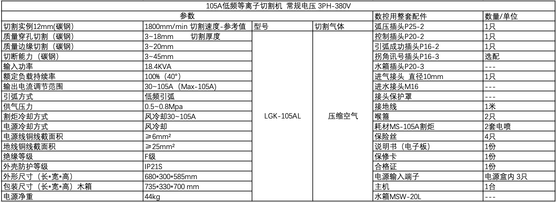 逆变式空气等离子切割机Max-105AL 单相供电220V/三相供电380V/220V Cut/Marking/Gouge 切割/打标/气刨