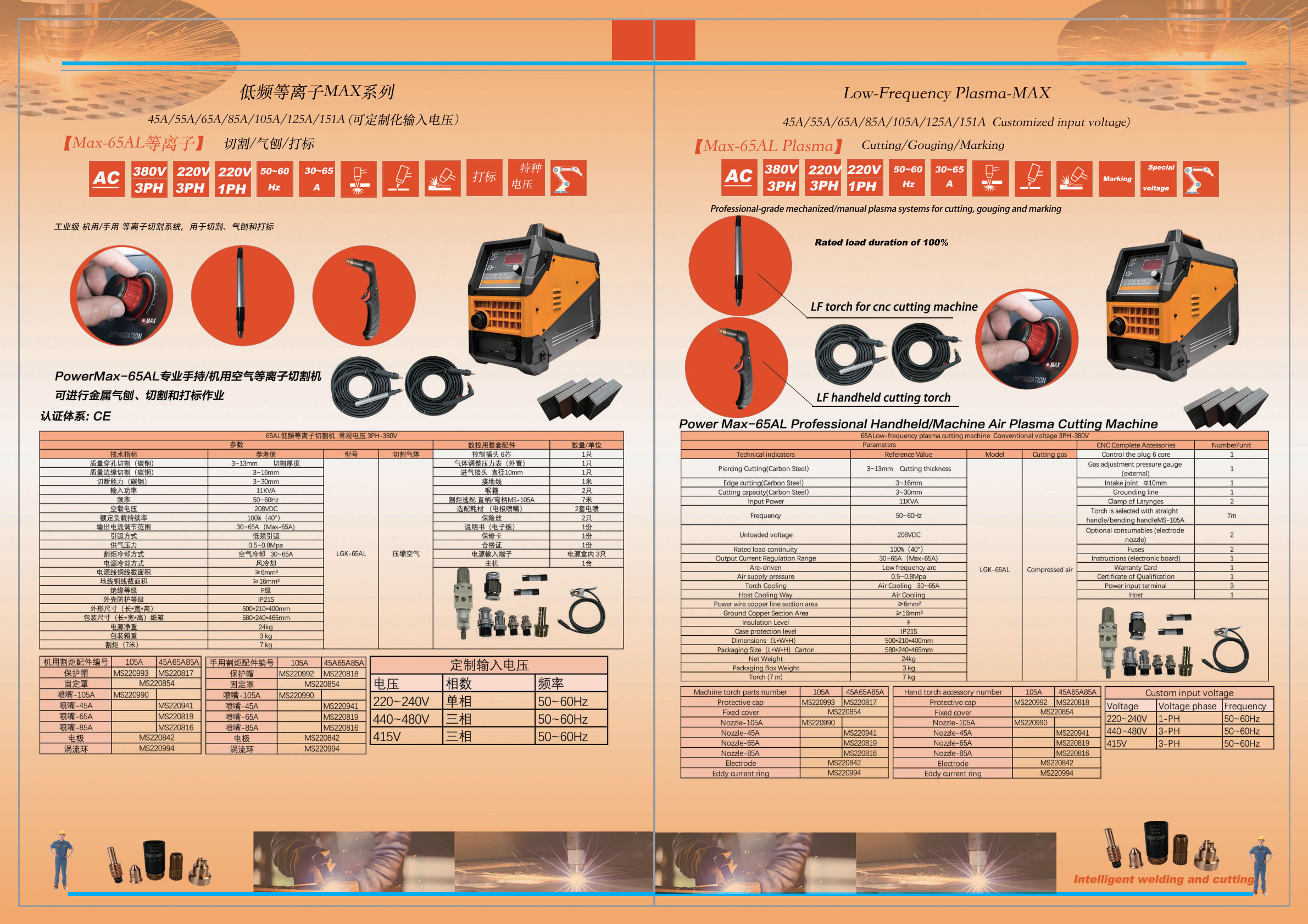 逆变式空气等离子切割机Max-65AL 单相供电220V/三相供电380V/220V Cut/Marking/Gouge 切割/打标/气刨