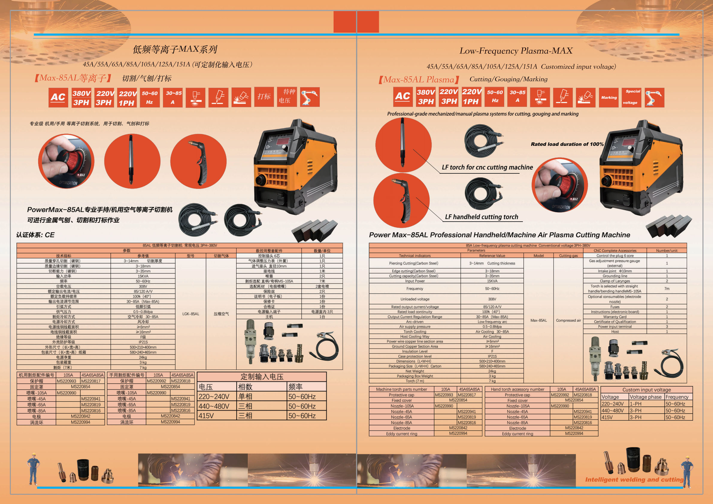 逆变式空气等离子切割机Max-85AL 单相供电220V/三相供电380V/220V Cut/Marking/Gouge 切割/打标/气刨