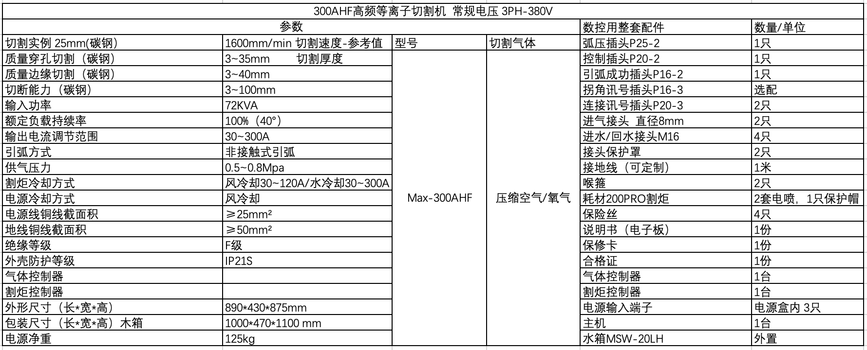 精细等离子切割机Max-300AHF(空气/氧气-气体控制器) 三相供电380V/220V Cut/Grid/Marking/Gouge 切割/网格/打标/气刨