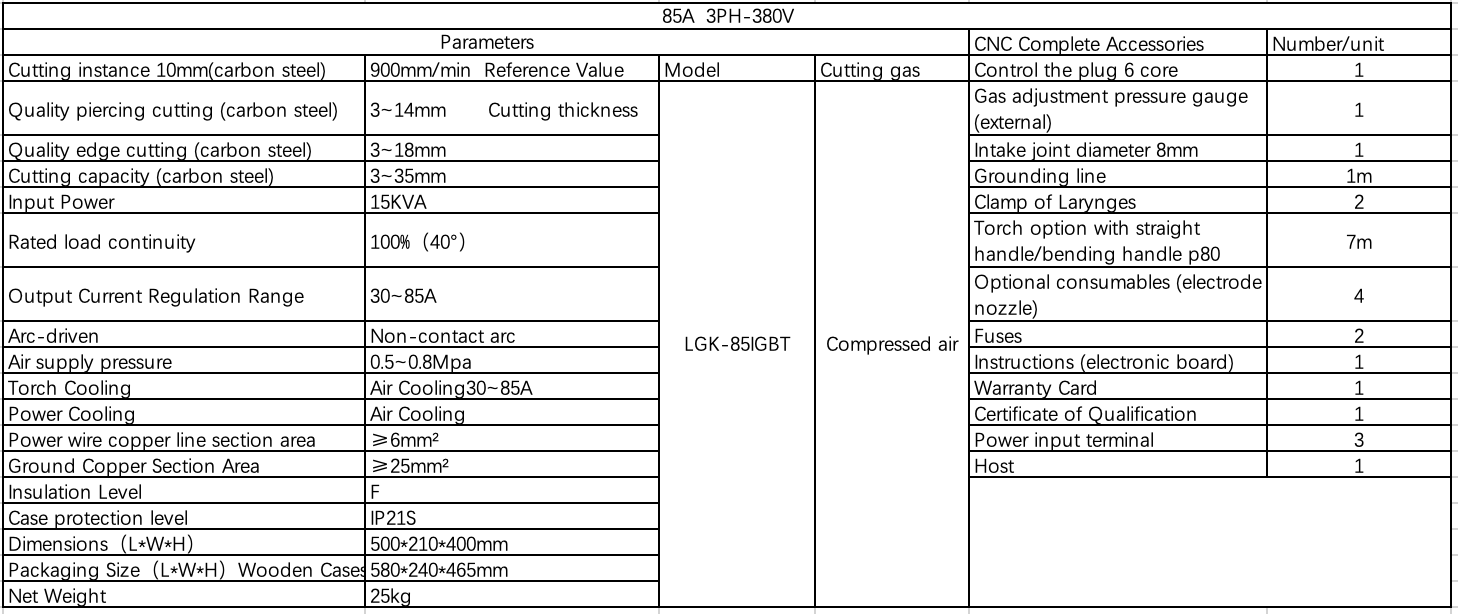 All the important parts in this plasma cutting machine like IGBT, diode, integrated circuit, relay, current and voltage regulator are world famous brand which have high reliability;