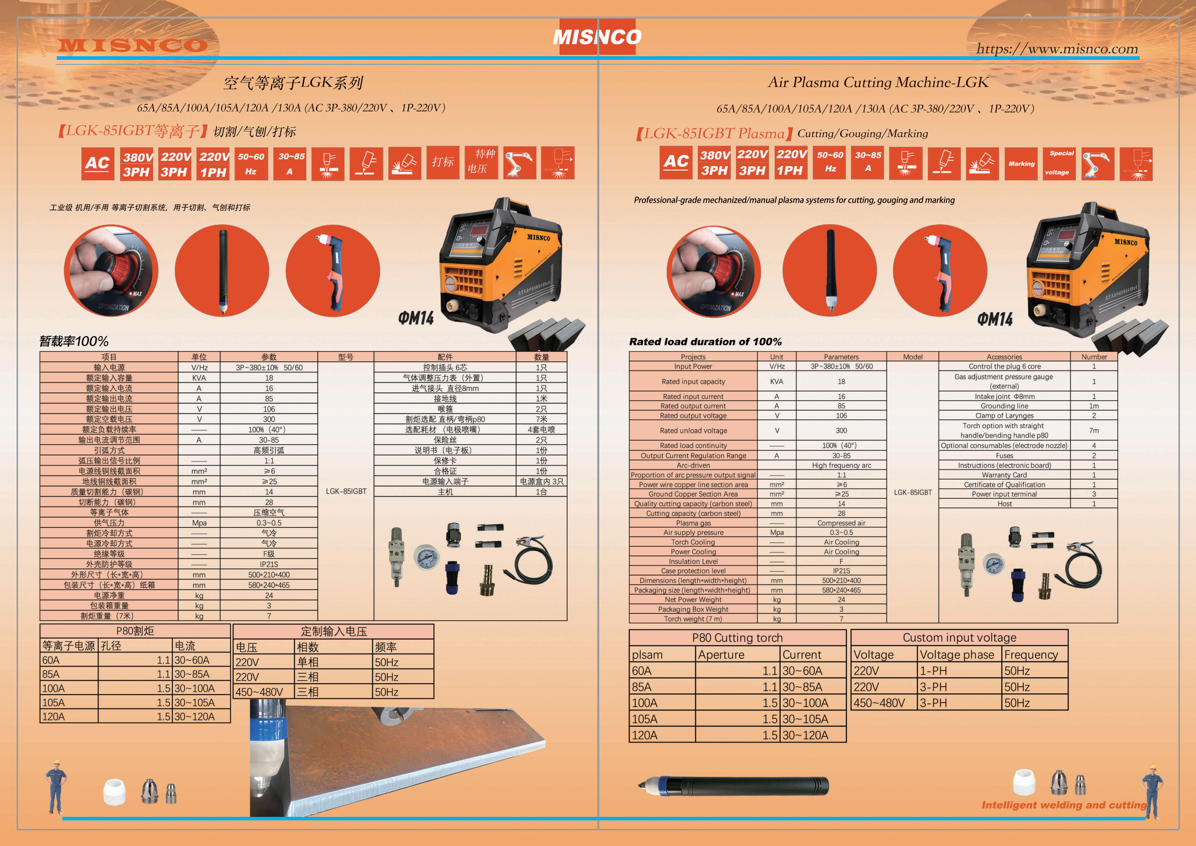 逆变式空气等离子切割机LGK-85IGBT 单相供电220V/三相供电380V/220V Cut/Grid/Marking/Gouge 切割/网格/打标/气刨