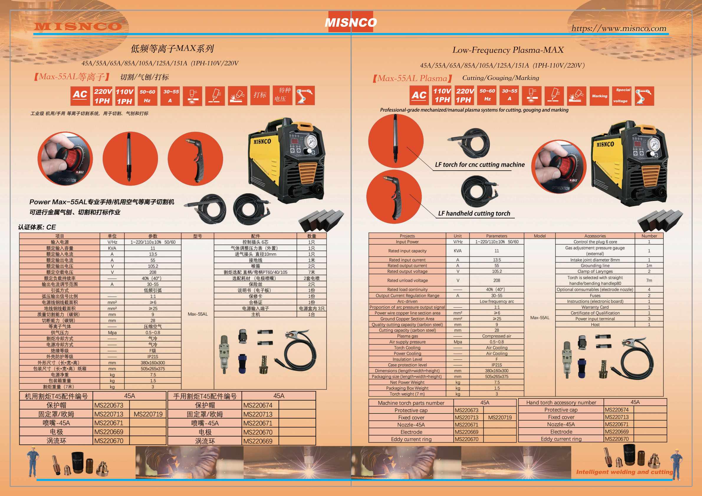 逆变式空气等离子切割机Max-55AL 双电压1P-110/220V Cut/Marking/Gouge 切割/打标/气刨