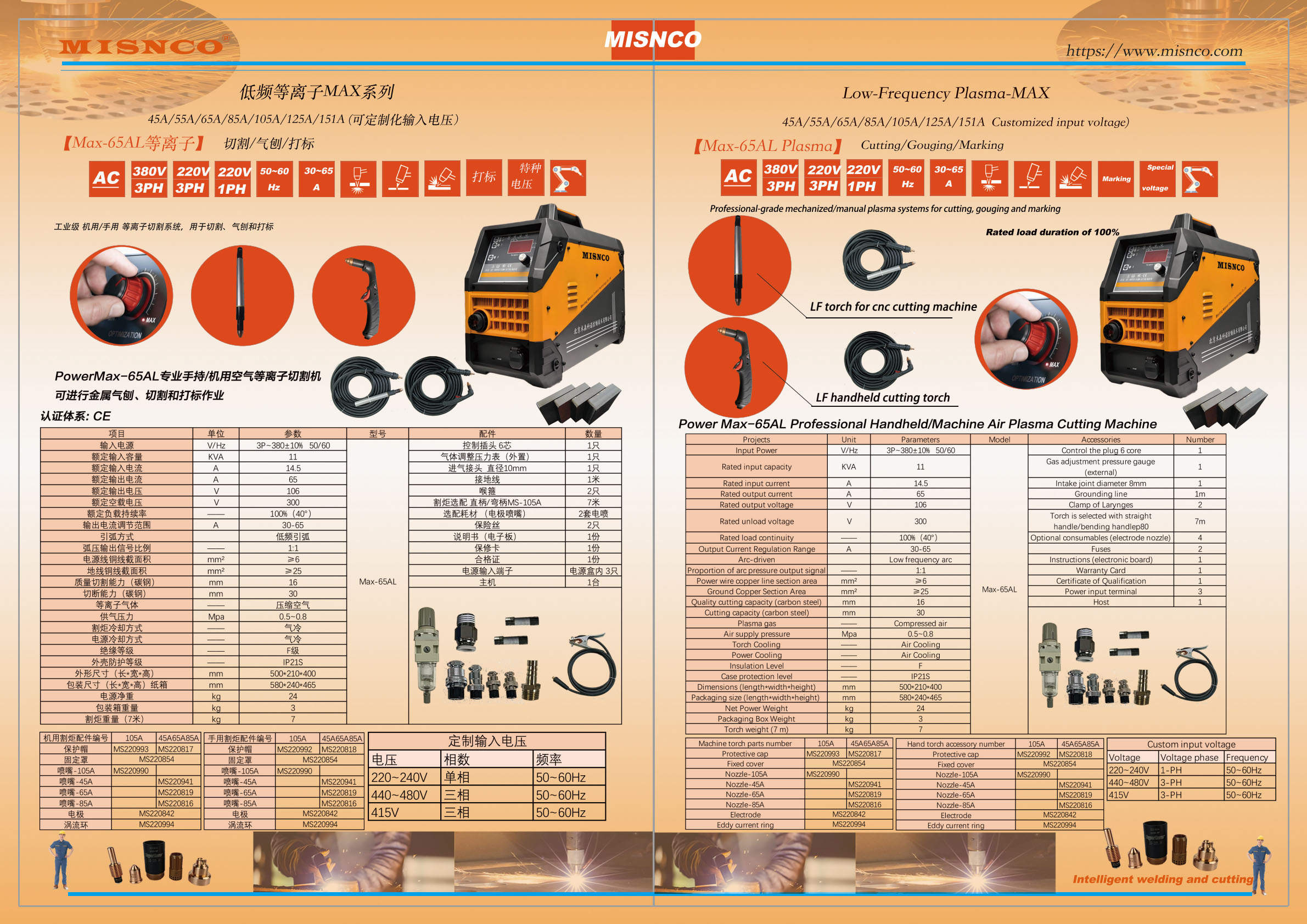 逆变式空气等离子切割机Max-65AL 单相供电220V/三相供电380V/220V Cut/Marking/Gouge 切割/打标/气刨