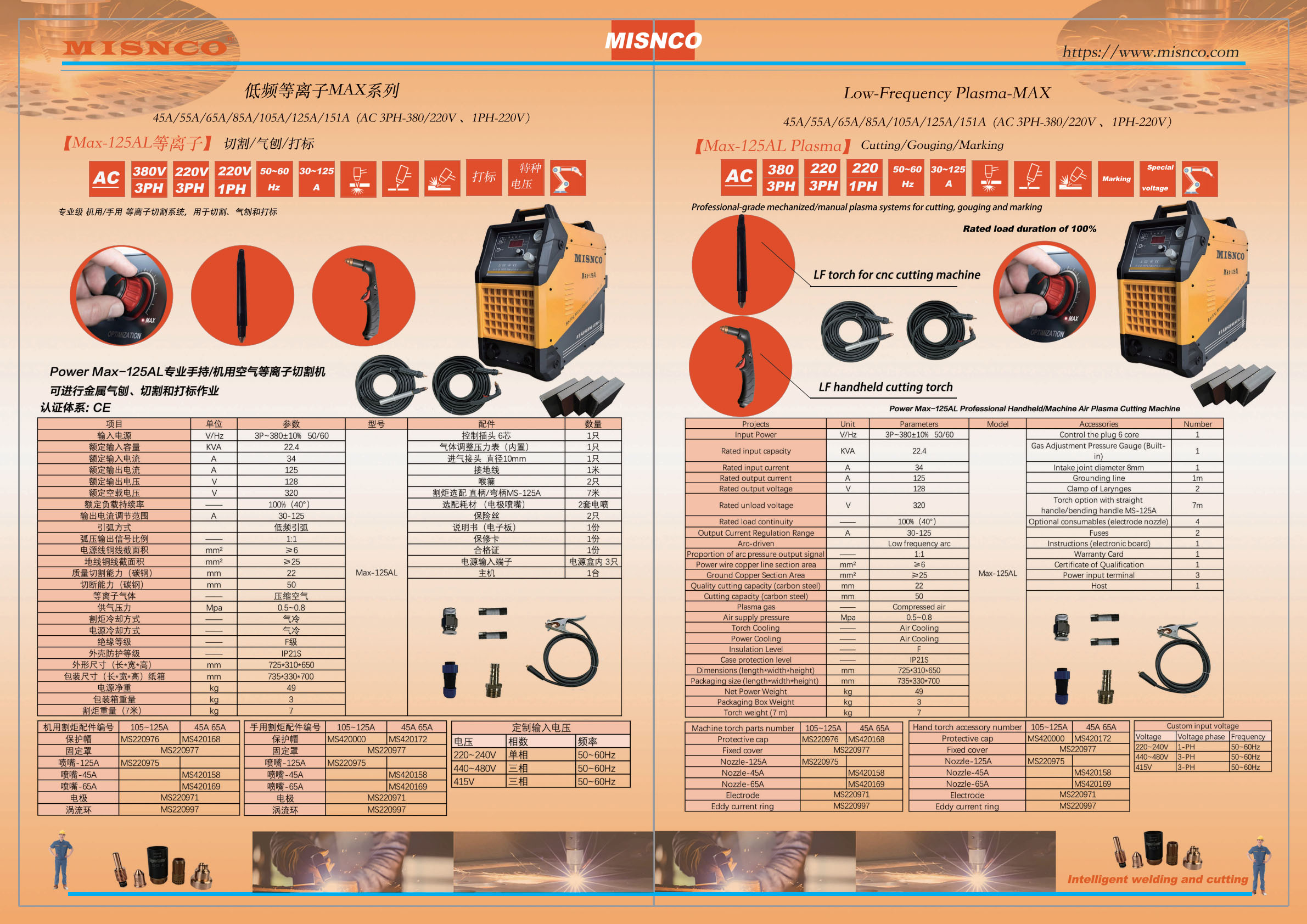 逆变式空气等离子切割机Max-125AL 单相供电220V/三相供电380V/220V Cut/Marking/Gouge 切割/打标/气刨